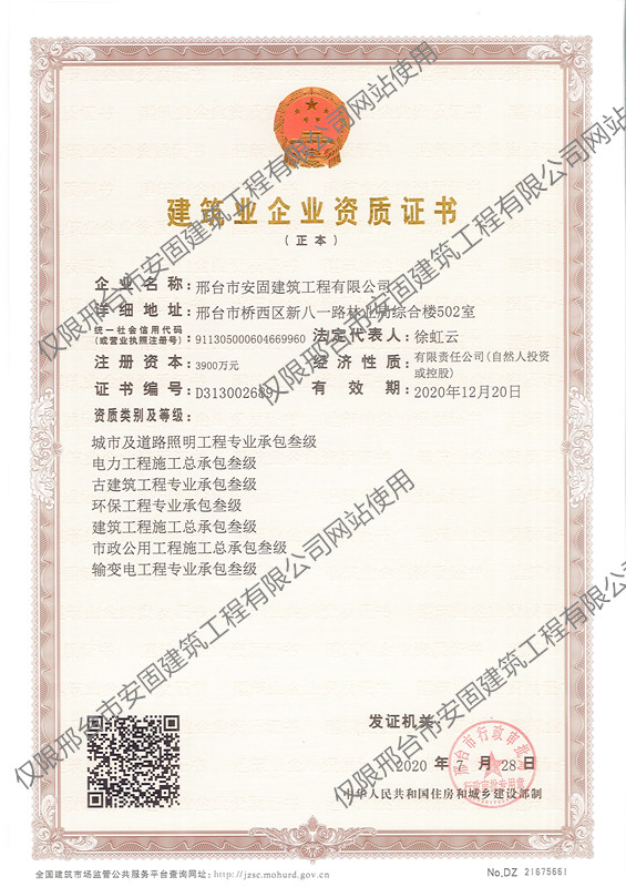 公司资质|邢台市安固建筑建筑工程有限公司